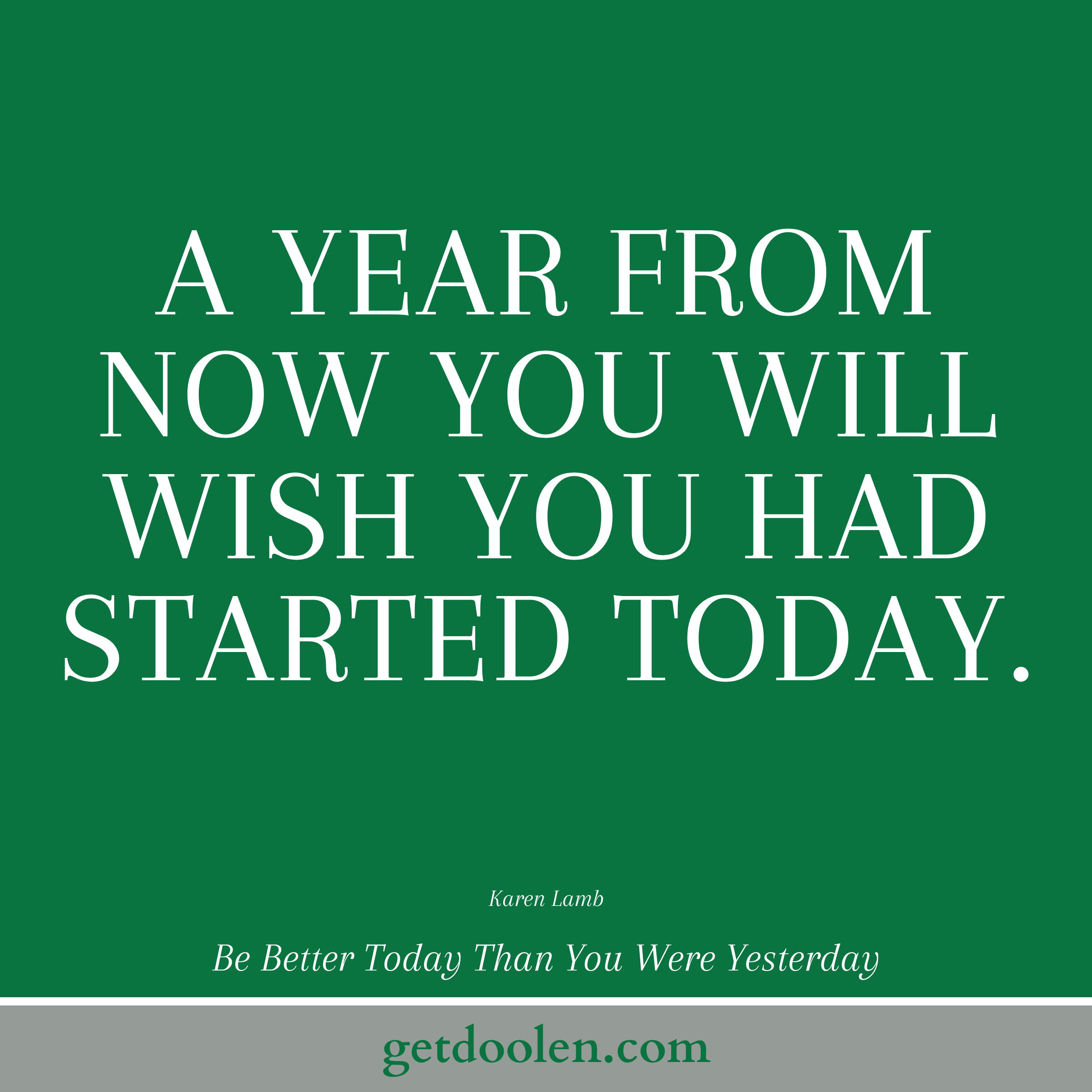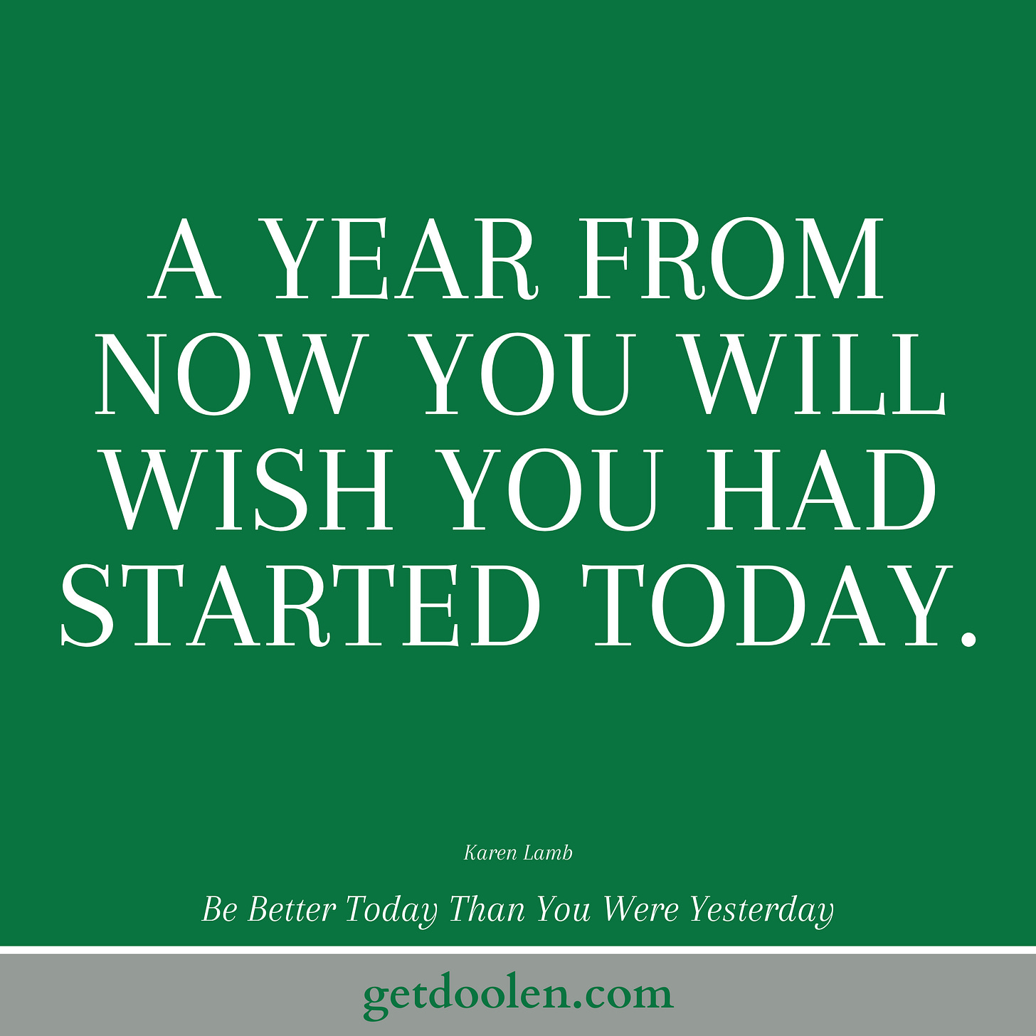 A year from now you will wish you had started today.